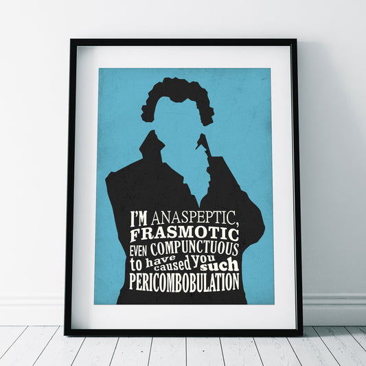 • ANASPEPTIC FRASMOTIC EVEN COMPUNCTUOUS, Butler Blackadder Quote, Blackadder Print (Blue)