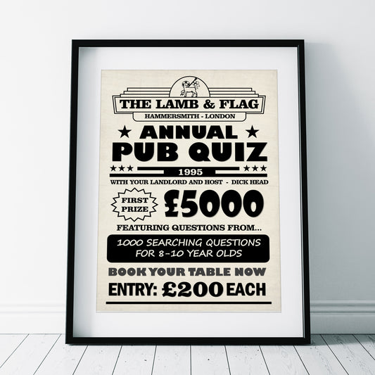 ANNUAL PUB QUIZ, 1000 SEARCHING QUESTIONS Lamb and Flag Pub Poster. Bottom Print