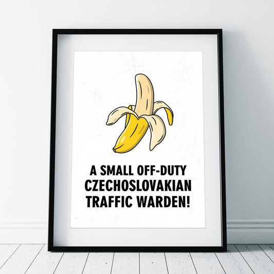 A SMALL OFF-DUTY CZECHOSLOVAKIAN TRAFFIC WARDEN! Kyrtens Banana Lie, Red Dwarf Print