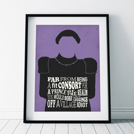 BORE THE LEGS OFF A VILLAGE IDIOT, Prince Blackadder Quote, Blackadder Print (Purple)