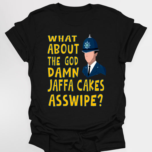 14% Limited Time DiscountWHAT ABOUT THE GOD DAMN JAFFA CAKES ASSWIPE? - Bottom T-Shirt