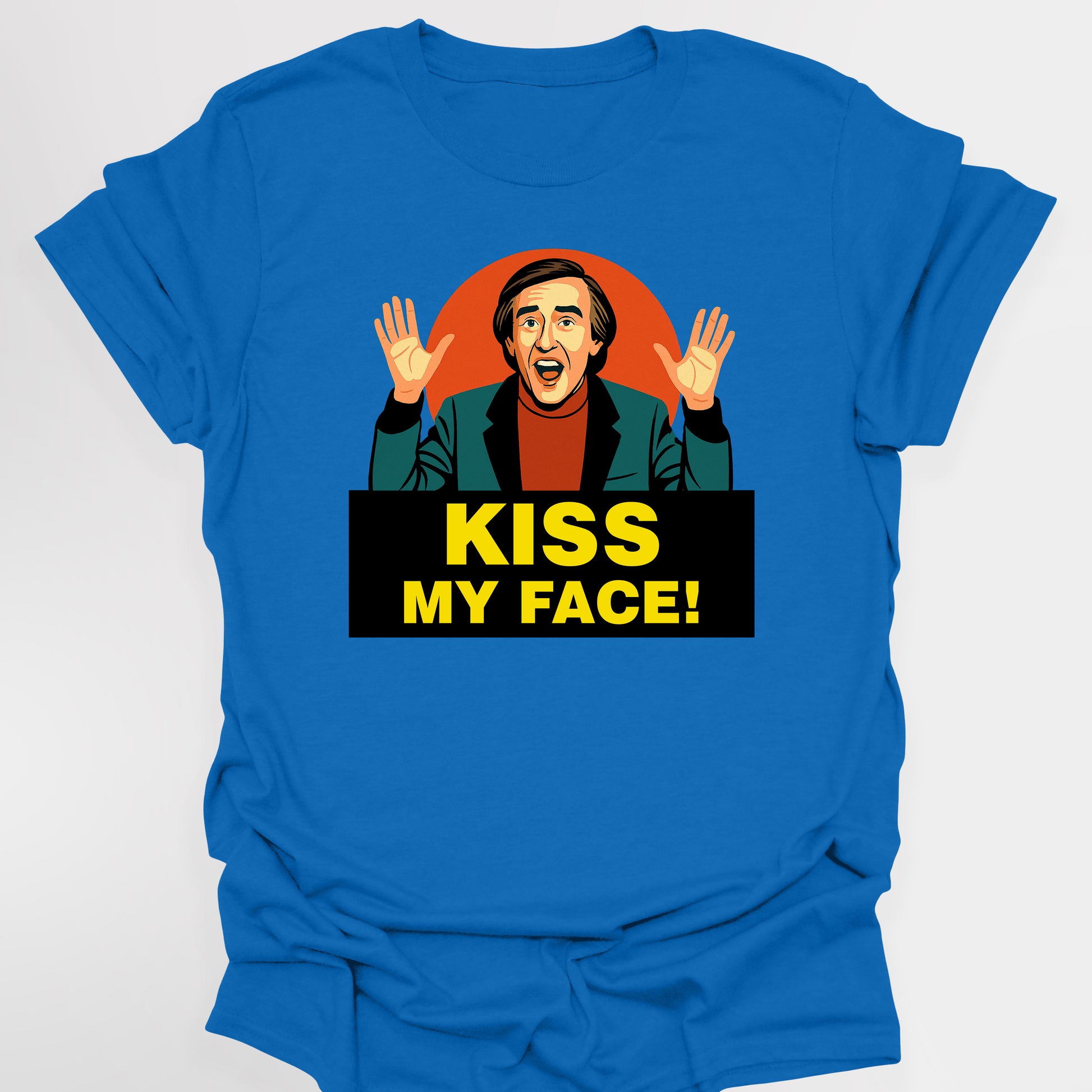 With so many classic quotes and catchphrases from the iconic Alan Partridge, the outburst of 'Kiss My Face!' stands out. Accompanied by a portrait of the late night radio host, this bright and colourful design makes for a t-shirt that is sure to have you standing out in a crowd, but would equally make for an ideal gift for any fan of this classic show.