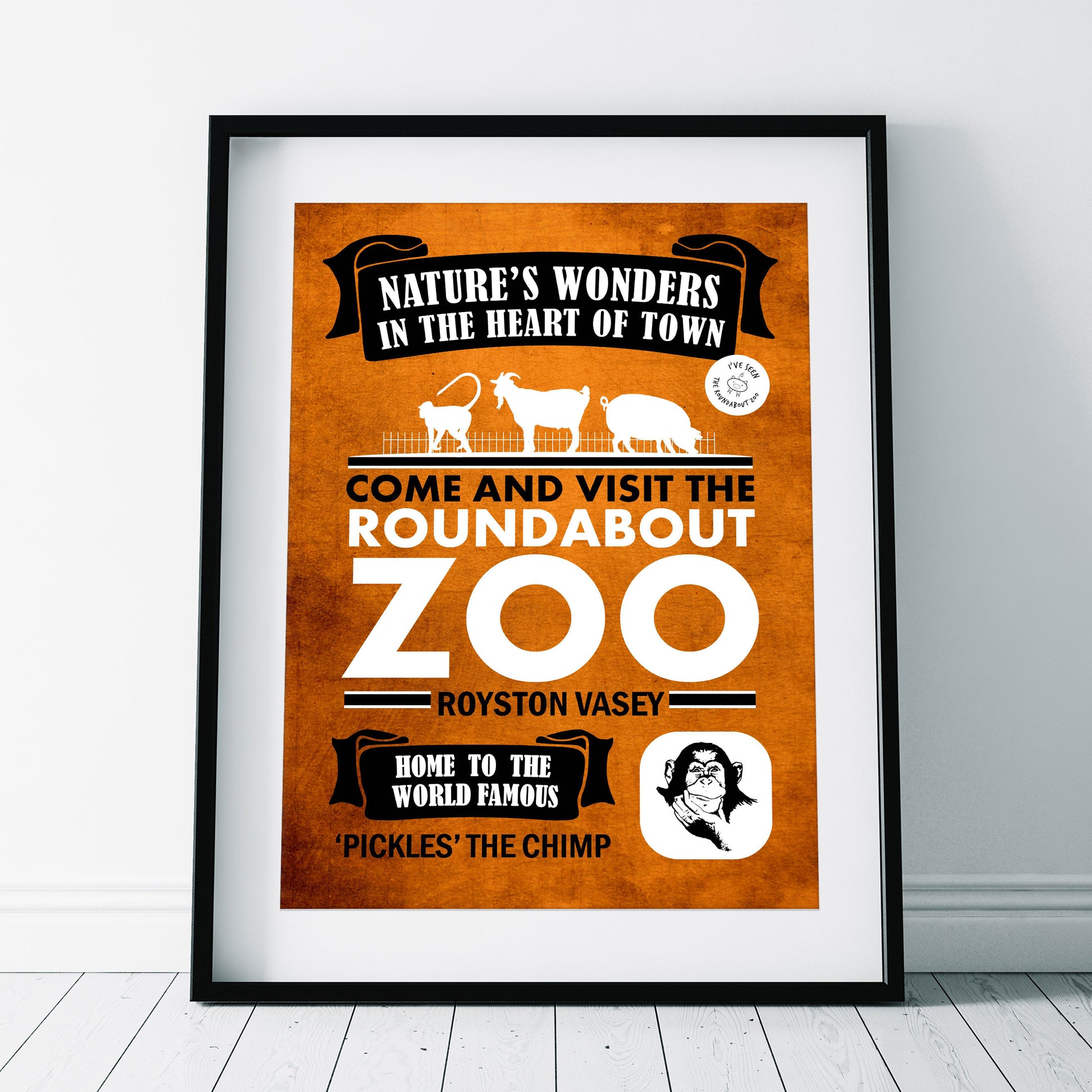 This exclusive design takes inspiration from the wonderful attraction in the middle of Royston Vasey, THE ROUNDABOUT ZOO, home to the world famous ‘Pickles the chimp’. As much as it would be fun to visit, our creative design the next best thing. This unique poster style print not only looks amazing, but would make an ideal gift for any fan of this memorable show.