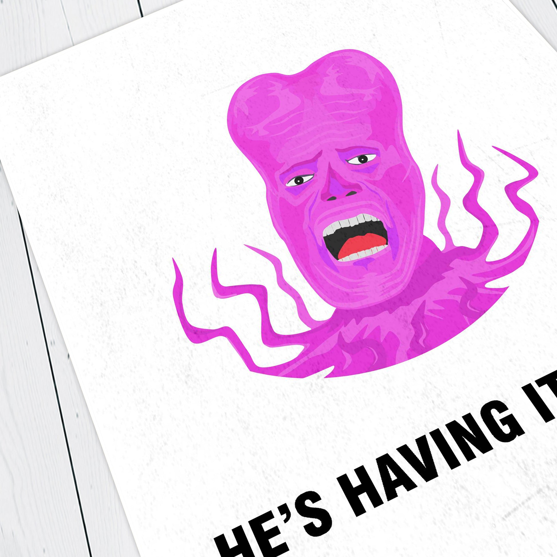 This exclusive design takes inspiration from the character of Tony Harrison, the tentacled disembodied pink head. An illustrated portrait paired with his iconic quote 'He's Having it Large' is sure to have you wanting to join the board of shaman. This unique poster style print looks amazing and would make an ideal gift for any fan of this memorable show.