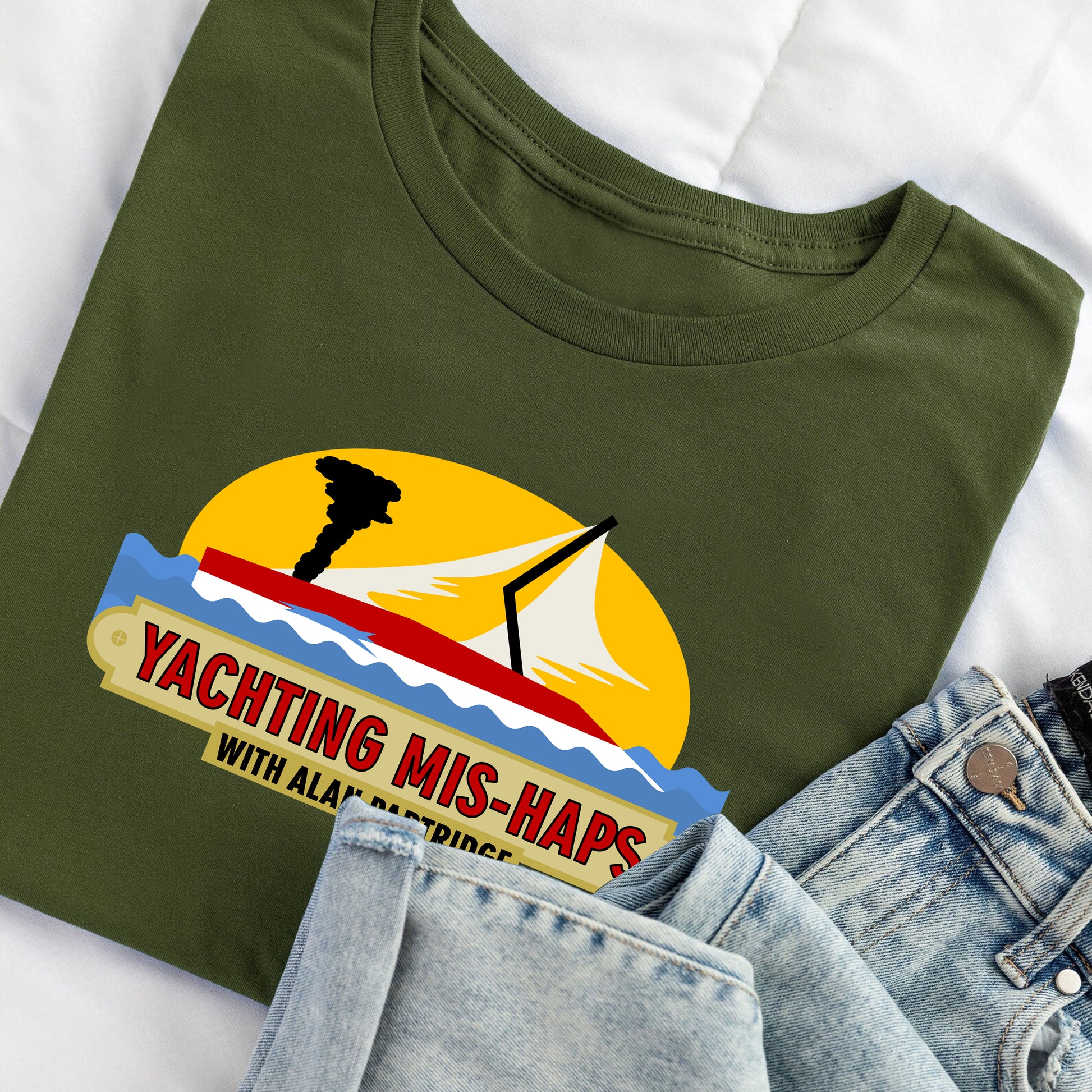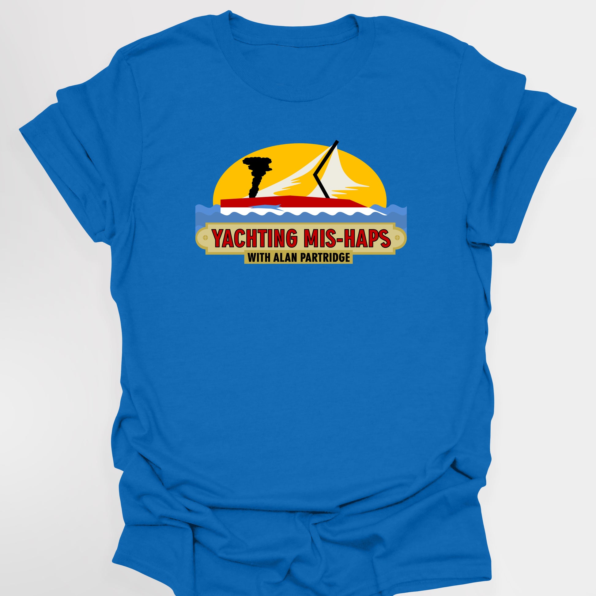 Alan Partridge had many ideas for a TV show, more often than not, they would be ones that didn't quite appeal to the TV producers. Yaughting Mis-haps was one of those classic ideas that has inspired this design, imagining what the logo for this fictional show may olok like. This t-shirt is sure to have you standing out in a crowd, but would equally make for an ideal gift for any fan of this classic show.